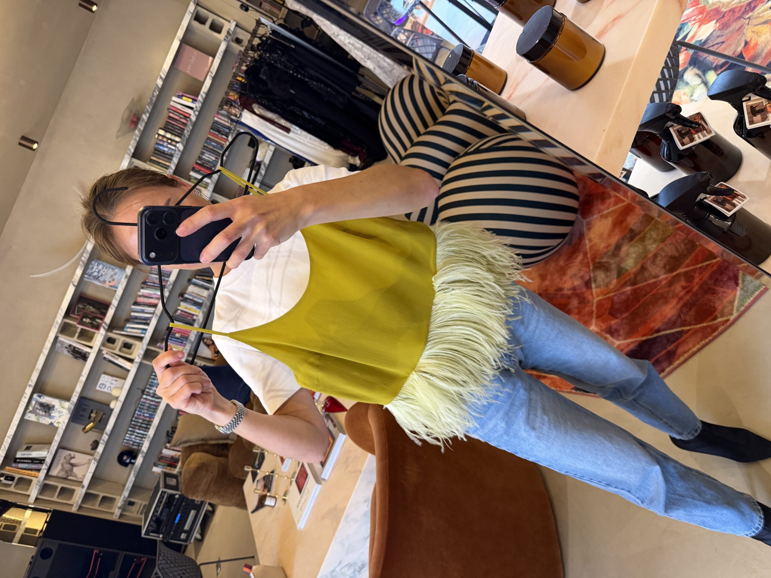 Green top with feathers (S)