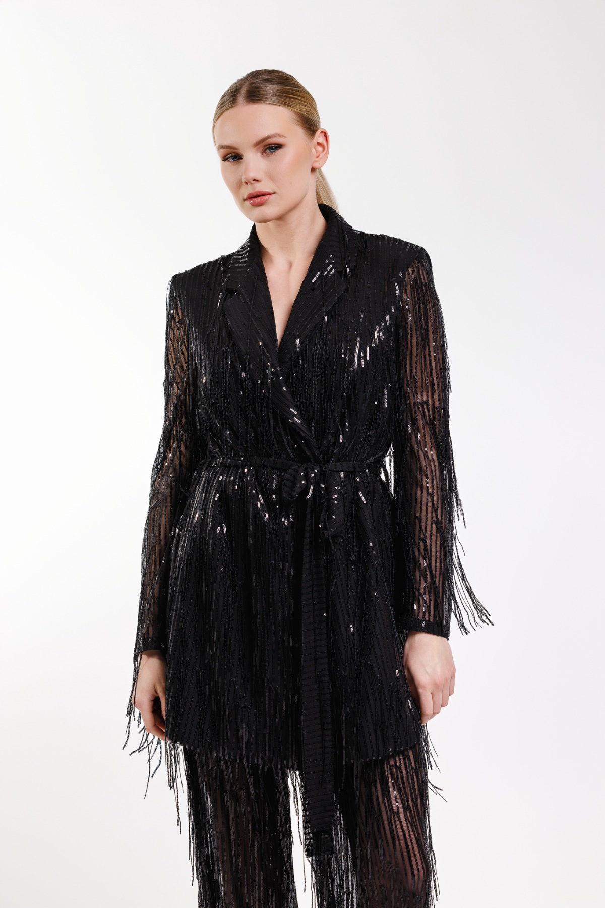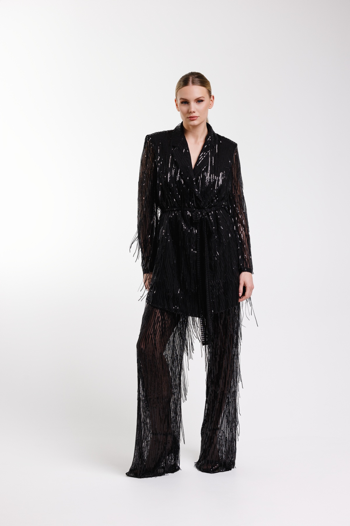 Black fringe blazer and pants (M/L)